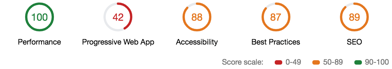 Lighthouse is an audit tool developed by Google which collects different metrics of your website. After collecting the metrics it will present a series of scores for your webpage. The scoring is divided into five main auditing areas.