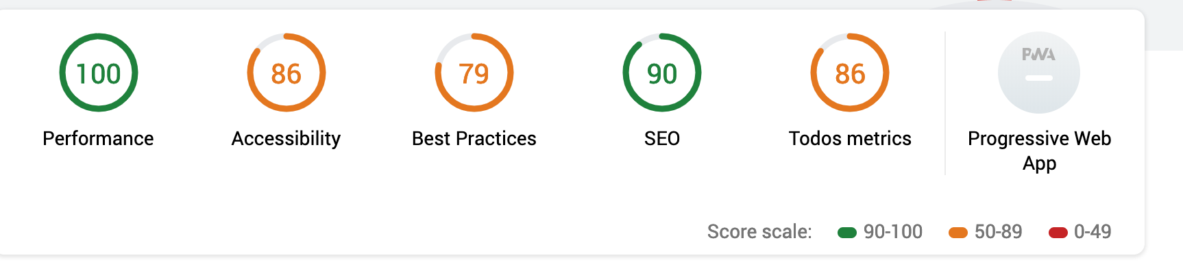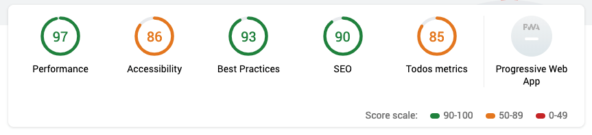 node scan-auth.jsWhich record the default Lighthouse metrics plus the custom Todos metrics which on this case are behind a user authentication.